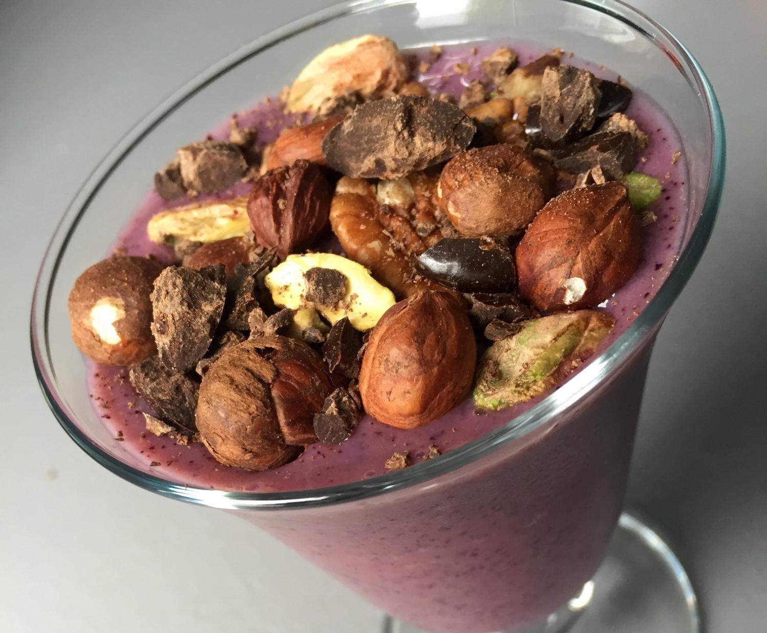 On sert dans un verre ou autre parsemé de pistache noix de pecan noisettes et chocolat émietté .