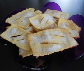 Ces "bugnes" ne sont pas des vraies bugnes lyonnaises, elles sont craquantes et ne contiennent pas de matière grasse dans la pâte.